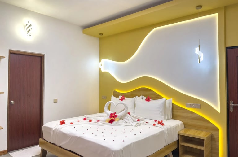 The rooms at Thundi Villa are designed to offer comfort and convenience with a touch of island charm. Each room features air-conditioning, comfortable bedding, and a private ensuite open air bathroom with hot and cold water, fresh towels, and premium toiletries.